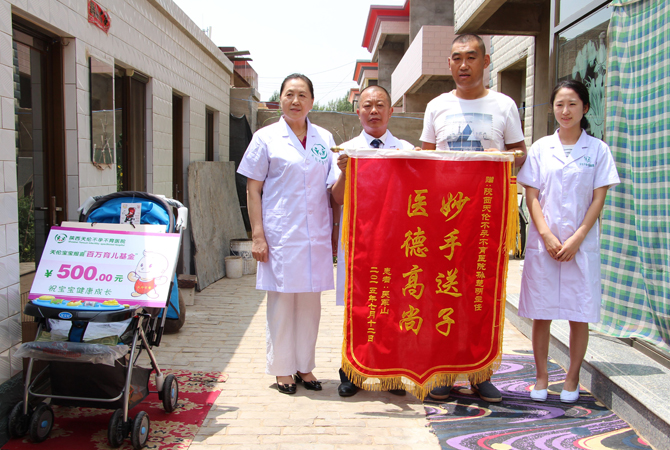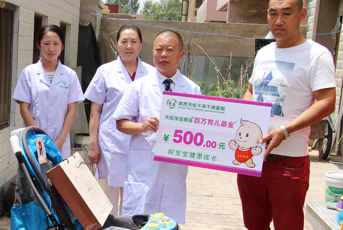 2015年七月中旬我院导代表全员全体员工,远赴定边县,为天伦小宝宝送去500元育儿基金、小童车以及儿童衣服一套。和他们一起分享新生的喜悦。