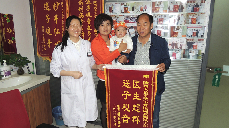 患者自述:我叫赵改莉,今年30岁,是陕北子丹县人,我以前做过结扎手术,后来和老公商量着想再要个孩子,就在甘肃庆阳一家医院做了输卵管吻合术,术后一年多还是一直怀不上孩子。后来听朋友说陕西天伦不孕不育医院治疗不孕不育很专业,2015年正月在就来到了天伦医院找到了袁主任,袁主任对我进行问诊检查后,采用口服药给我进行了调理,当月我就怀孕了。2015年农历十月份,我顺利地生下了女儿,现在女儿已经五个月大了,今天特意和老公一起来向袁主任表示感谢。