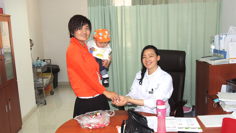 袁主任介绍治疗过程:赵改莉是2015年正月来到医院找到我的,她告诉我自己以前做过结扎手术,一年多前在甘肃做过输卵管吻合术,可是术后都一年多了还是没有怀上,希望我能够帮助她。对她做过相关的检查后,我给她做了个短期的促孕计划,口服中西药,通管促卵治疗,当月她就打电话说怀孕了。2015年农历十月她顺利分娩一名女婴,现在孩子已经五个月大了。