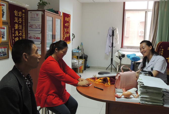 经过详细专业的检查后,确诊我因为输卵管阻塞以及排卵障碍导致的不孕症,需要做微创输卵管疏通术。因为期间有点事情,手术就安排到了七月份进行了,术后两个月都过来复查,袁主任都说输卵管恢复的挺好的,可以开始调理卵泡了。大概调理了小半年,月经三天没来,在我们那里检查,没检查出来,后来也有点出血,还以为是月经来了。直到七月份去检查才发现已经怀孕15周了,我自己都不敢相信,真的特别高兴,赶紧打电话给袁主任报喜。今天来到医院,就是来谢谢袁主任,谢谢她让我有了自己的孩子。