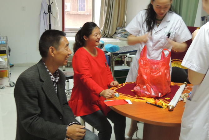 2016年9月12日蔡川川和她的爸爸来院报喜,与大家一起分享喜悦,并且我院为准妈妈送去三次免费四维彩超优惠券作为礼物。