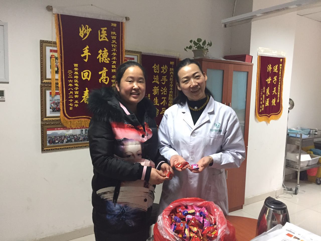 2016年11月19赵小平来院报喜,与大家一起分享喜悦,并且我院为准妈妈送去三次免费四维彩超优惠券作为礼物。