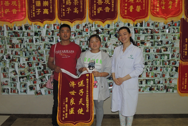 2016年5月24日焦芳芳来到我院,送锦旗感谢袁主任精湛的医术,并给大家发喜糖,分享她的幸福。