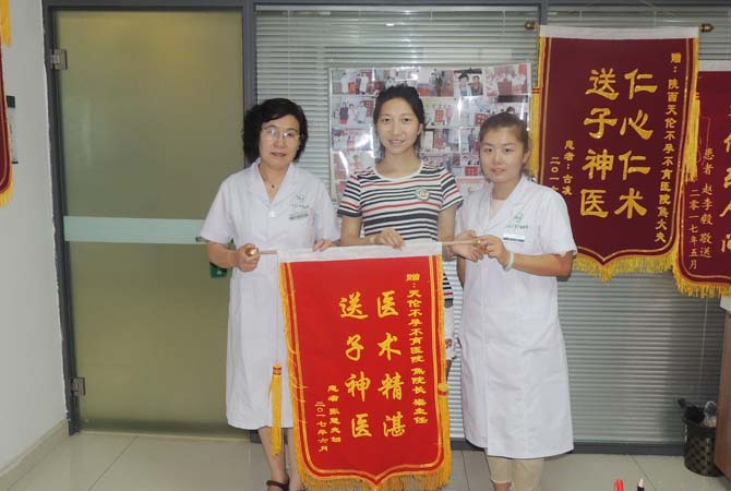 焦院长讲述治疗经过:张女士是2016年12月份次来我院就诊,询问病史时发现她情况比较特殊:双子宫,有怀孕的可能,但由于双子宫有时候发育及营养不好,所以之前的三次妊娠史到3个月左右就自然流产了。她刚来时做性激素六项检查显示激素水平不好,给她做宫腔镜检查看子宫发育情况,在治疗时就要综合评估一下,看哪侧发育好排卵好,就让哪侧排卵受孕。在手术中加压疏通输卵管,术后调理月经。其爱人的弱精症也在我院男科梁主任处治疗,术后夫妻俩坚持配合我院医生治疗,后经过四个多月调理于2017年6月1日电话报喜怀孕。