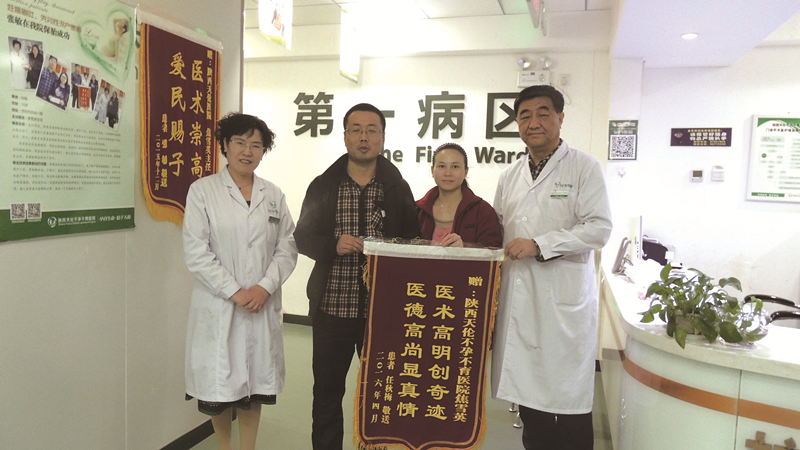 2016年4月15日任秋梅和老公一起来我院给焦院长送锦旗,感谢焦院长精湛的医术,并给大家发喜糖,分享他们的幸福。