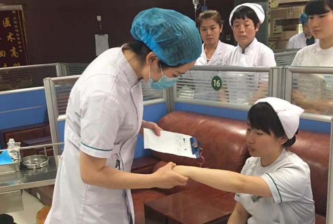 在培训中,主要学习输液室的接诊工作流程及无菌操作原则、消毒隔离制度、防止交叉感染、正确执行医嘱。严格三查十对,药物过敏试验操作与判断结果,大家互相学习及讨论,优化流程,取得好的学习效果。