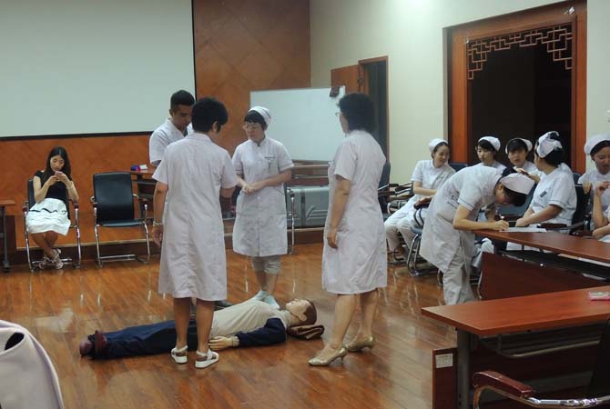 7月18日下午4点,我院医务科、护理部组织医院住院部、输液室、门诊等科室对全体医护人员进行徒手心肺复苏操作专题培训,全院共计50余人参加。