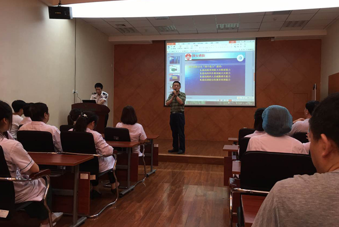 9月14日下午,我院在负一层多功能大厅举办了消防安全知识讲座,全体院领导及医护人员到场参加培训。
